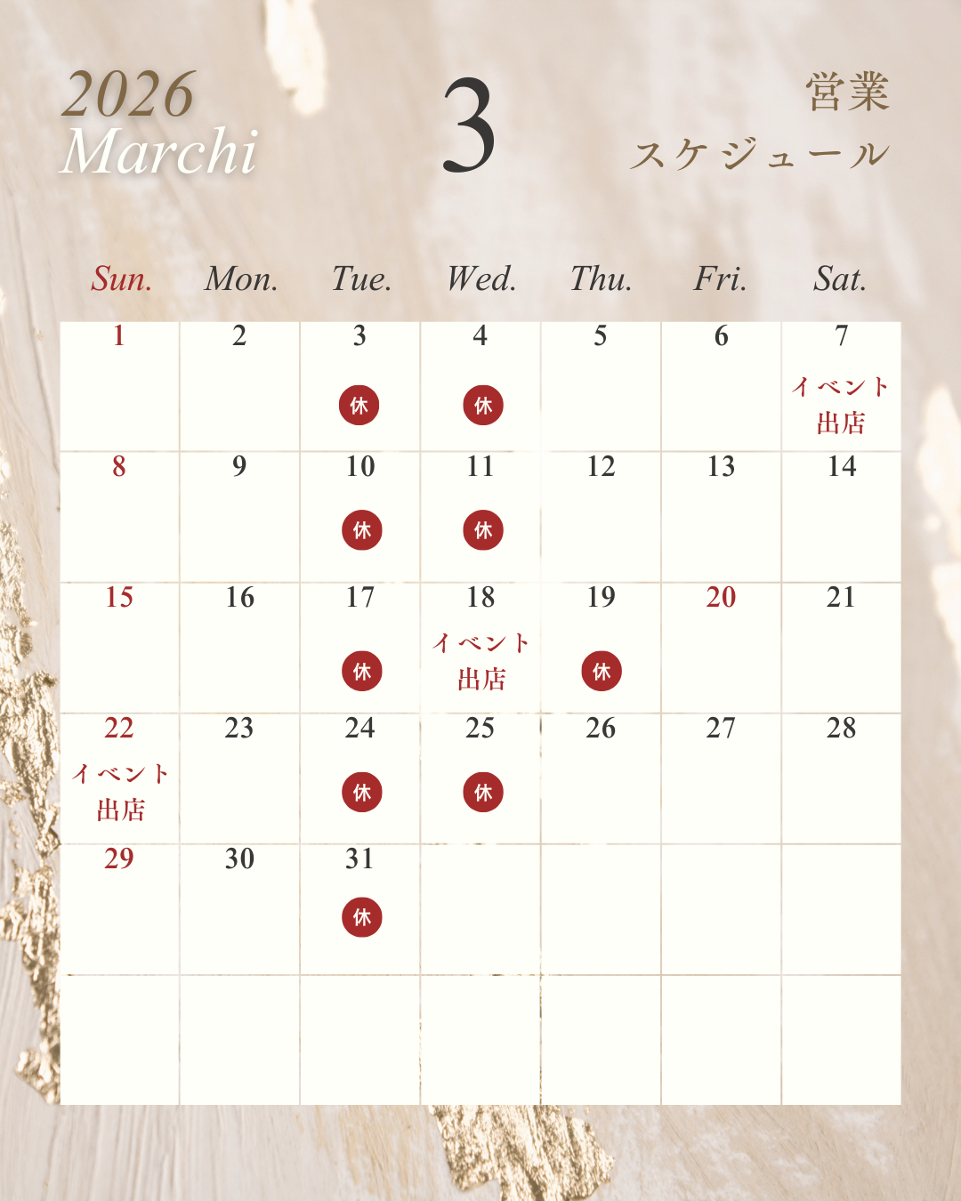 3月営業スケジュール