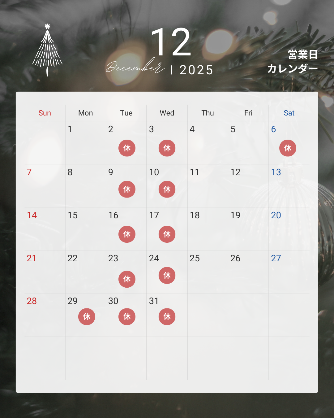 12月営業スケジュール お知らせ X Facebook はてブ LINE コピー 2025.12.02 お知らせが遅くなり申し訳ございません。 火曜日・水曜日は定休日となります。 6日(土)セレッソ大阪出店のためお休み 12/29~1/3まで年末年始のお休み 12/30・1/1は全国高等学校ラグビーフットボール大会(花園ラグビー場)に出店となります。 今年も残りわずかとなりますが、引き続きよろしくお願い致します。